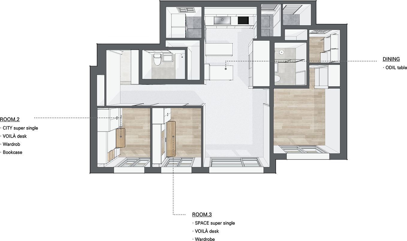 공간활용을 최대로 높이는 신개념 가구로 지속가능하고 스마트한 주거공간을 제안합니다. ‘공간의 지속가능성, 유연성, 모듈성, 다기능성' 을 추구하는 신개념 스마트 가구를 통해 사용자의 생활패턴과 필요에 따라 다양한 변화가 가능한 공간의 혁신을 선물합니다.